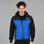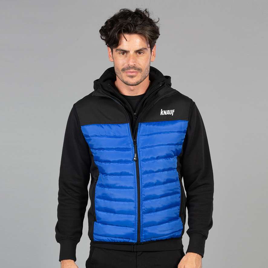 Gilet bimateriale realizzato in softshell impermeabile e imbottitura effetto piuma da 180gr. Due tasche laterali chiuse con zip, tessuto elasticizzato al giromanica al girovita.